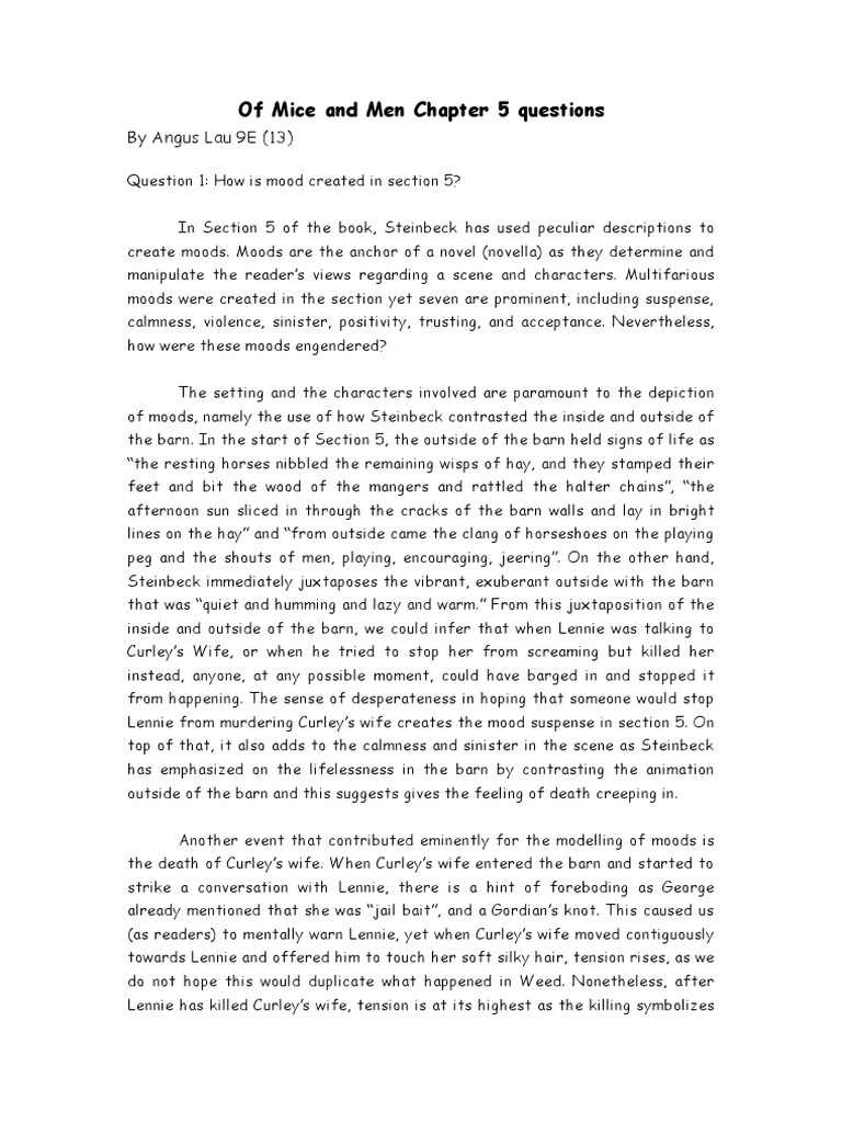 Of Mice And Men Chapter 5 Questions Pdf Violence
